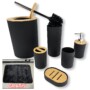 Unesi luksuz i eleganciju u svoju kupaonicu uz moderni 6u1 kupaonski set u crnoj boji s bambus detaljima. Ovaj set donosi savršenu kombinaciju praktičnosti i estetike te osigurava uredan i sofisticiran izgled tvog prostora.